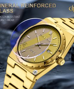 Dial: Sunburst Dial with Genuine Swiss Nails and Super Luminous Light, Single Day-Date Window, Gold-tone Finish with Electroplated Mirror Finish