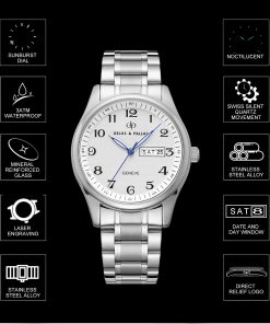 Ial: sunburst dial, swiss nail strong night light, date and day window, silver theme+electroplated mirror treatment